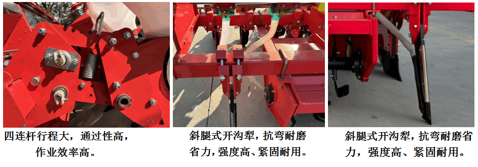 6、地輪采用單臂設(shè)計,有效避免纏繞、擁堵,各行傳動軸連成一體,統(tǒng)一驅(qū)動,傳動動力大,即使其中一側(cè)地輪偶然打滑也不影響正常播種:播種單體采用仿形設(shè)計,可隨地面上下浮動、可實現(xiàn)播深一致。