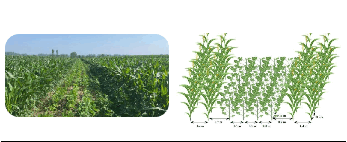 3、根據(jù)大豆玉米間作套種農(nóng)藝特點,大豆采用先旋耕后種植,利于出苗、避免機具擁堵,玉米采用免耕種植,利于抗倒伏;