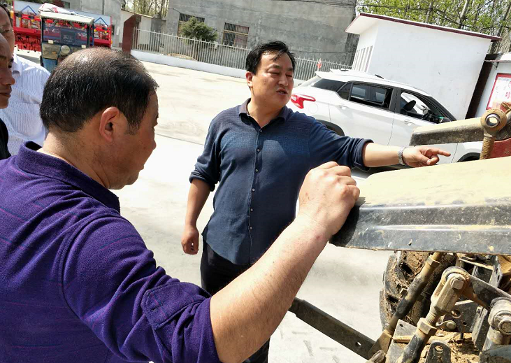 隨后,公司銷售課負(fù)責(zé)人白栓禮向逯亞森主任、張珀副書記以及拖拉機(jī)手2名詳細(xì)介紹了耕播機(jī)具的安裝、使用情況。