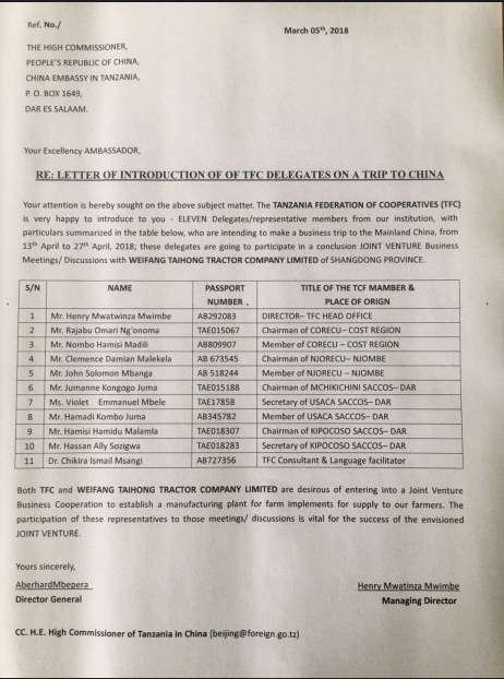 2018年4月20日上午,坦桑尼亞合作社(TFC)聯(lián)合會成員一行11人受邀蒞臨亞澳農(nóng)機考察農(nóng)業(yè)合作項目。唐河縣政府領導狄付長、縣農(nóng)機局方振副局長及亞澳農(nóng)機史炳哲總經(jīng)理全程陪同。