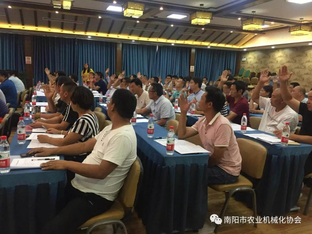 7月3日,南陽市農(nóng)業(yè)機械化協(xié)會成立大會在南陽市鷗凱印象酒店3樓會議室召開,南陽市農(nóng)業(yè)機械化管理局黨組書記、局長劉勤同志出席會議并做重要講話。選舉通過田云鎖(原南陽市農(nóng)業(yè)機械公司總經(jīng)理)同志當(dāng)選為會長,亞澳南陽農(nóng)機有限責(zé)任公司總經(jīng)理史炳哲、南陽奇豐機械有限責(zé)任公司董事長趙順奇、鎮(zhèn)平縣糧豐農(nóng)機農(nóng)民專業(yè)合作社理事長薛云濤當(dāng)選為副會長。