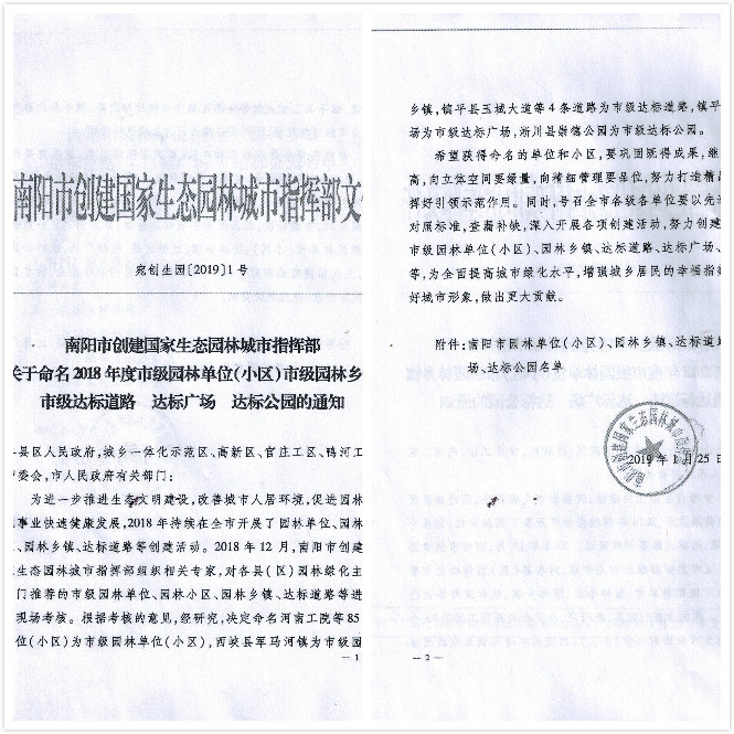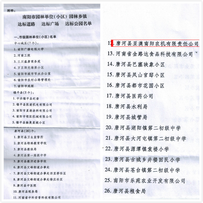 亞澳農(nóng)機喜獲南陽市園林單位