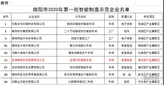 根據(jù)《河南省智能制造和工業(yè)互聯(lián)網(wǎng)發(fā)展三年行動(dòng)計(jì)劃(2018—2020年)》(豫政〔2018〕14號)文件要求,南陽市篩選出的A類企業(yè)名單,是符合集聚區(qū)產(chǎn)業(yè)發(fā)展方向、資源利用效率高、質(zhì)量效益好的企業(yè),是轉(zhuǎn)型發(fā)展攻堅(jiān)的引領(lǐng)力量,也是最有條件和能力實(shí)施智能化改造的先導(dǎo)群體。將作為河南省產(chǎn)業(yè)集聚區(qū)首批智能化改造推薦企業(yè)。