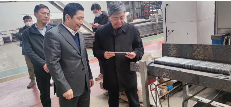 領(lǐng)導一行先后參觀了公司產(chǎn)品展廳、制造現(xiàn)場等區(qū)域,在總經(jīng)理的介紹下,領(lǐng)導們對公司產(chǎn)品智能制造過程、生產(chǎn)管理模式、綠色工廠體系發(fā)展、技術(shù)研發(fā)、知識產(chǎn)權(quán)等做了詳細了解,隨后進行了會談。