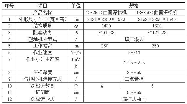 西安亞澳農機股份有限公司針對東北黑龍江、新疆等大塊地、需更高深度的深松地,特研發(fā)出既能達到深松要求,還可以保墑,機具堅固耐用的曲面深松機,以下為該產品的性能優(yōu)特點及詳細技術參數。