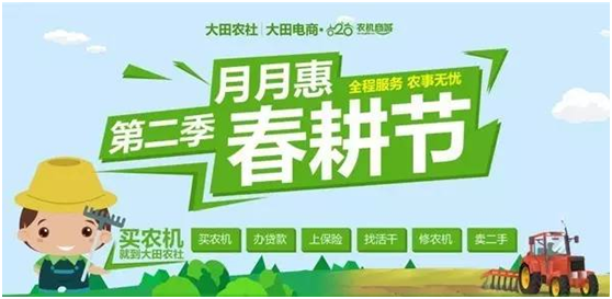 點(diǎn)評(píng):身為莊稼人,每年都會(huì)感覺(jué)機(jī)器不夠用,添置新機(jī)具也成為新年里的“必修課”。那么問(wèn)題來(lái)了,互聯(lián)網(wǎng)時(shí)代,還要一家家比價(jià)買(mǎi)農(nóng)機(jī)嗎?春耕節(jié)去哪兒買(mǎi)農(nóng)機(jī)更實(shí)惠?去哪兒查補(bǔ)貼?沒(méi)錢(qián)買(mǎi)農(nóng)機(jī)怎么辦?買(mǎi)了農(nóng)機(jī)沒(méi)活干怎么辦?如果你也有此困惑,快來(lái)大田農(nóng)社春耕節(jié)逛一逛。在這里,買(mǎi)農(nóng)機(jī)、辦貸款、上保險(xiǎn)、找活干、修農(nóng)機(jī)、賣(mài)二手統(tǒng)統(tǒng)可以有,讓你體驗(yàn)一個(gè)不一樣的春耕節(jié)。